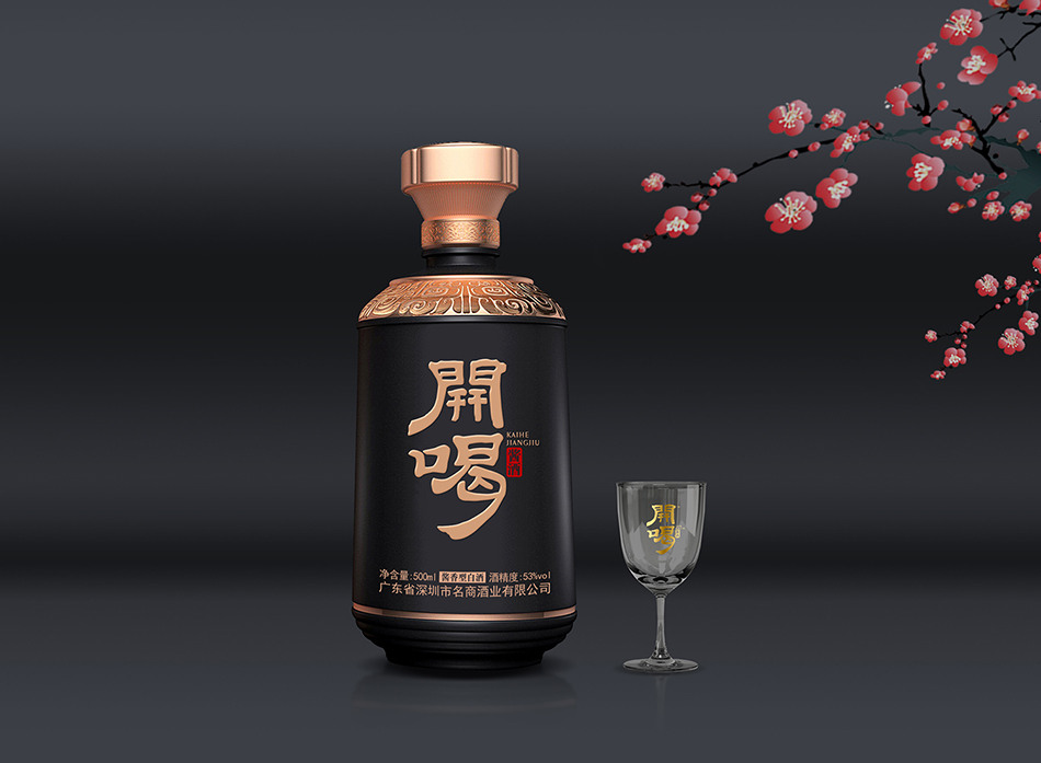 是也設(shè)計(jì)受深圳名商酒業(yè)有限公司邱總委托,為其名酒品牌開喝醬酒塑造品牌形象。